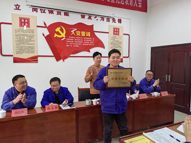 公司副總經(jīng)理趙永強(qiáng)宣讀了《關(guān)于兌現(xiàn)2024年度安全承包獎(jiǎng)的決定》、《關(guān)于表彰2024年度先進(jìn)班組和先進(jìn)個(gè)人的決定》,對2024年年度工作中作出突出貢獻(xiàn)的炭材運(yùn)行三班先進(jìn)班組、柴彬等8名先進(jìn)個(gè)人予以表彰,并頒發(fā)了先進(jìn)集體獎(jiǎng)等四項(xiàng)集體獎(jiǎng)牌以示鼓勵(lì)。